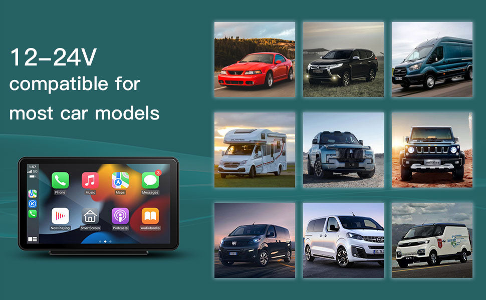 AUTOABC 7 Inch Portable CarPlay Android Auto Touch Screen multimedia Display