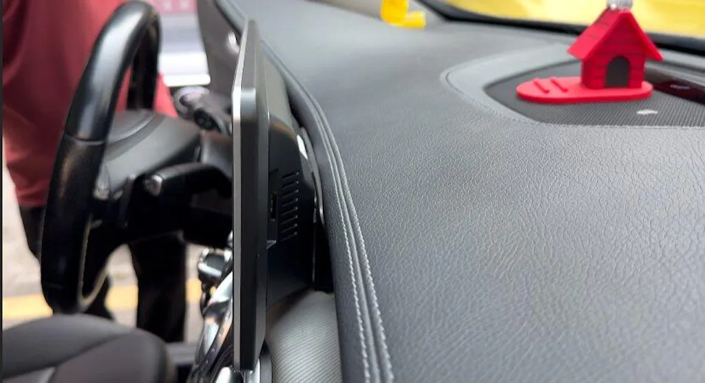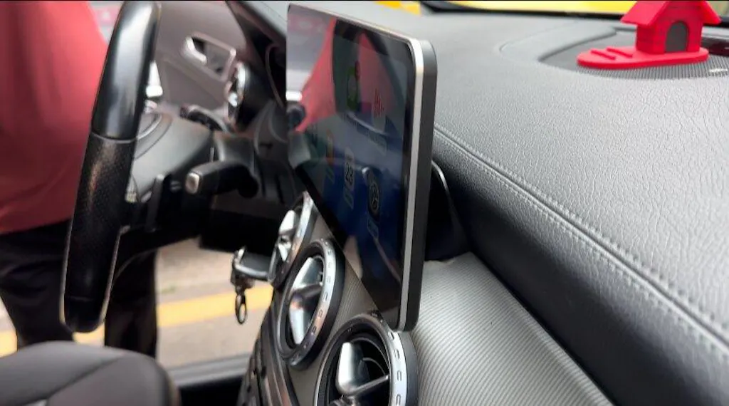 The ultra-thin design and very narrow bezels make a huge difference compared to my old screen. It looks very sleek and modern, almost like a newer Mercedes OEM display. With the photo you can really see how slim it is. CarPlay works perfectly and the touch response is very smooth. Highly recommended upgrade.