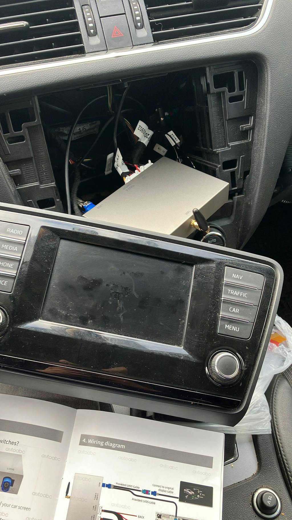 Read the manual carefuly and xonnect the new cables to the existing stuff and tadaaaaa CarPlay in your 20 years old car! :-)