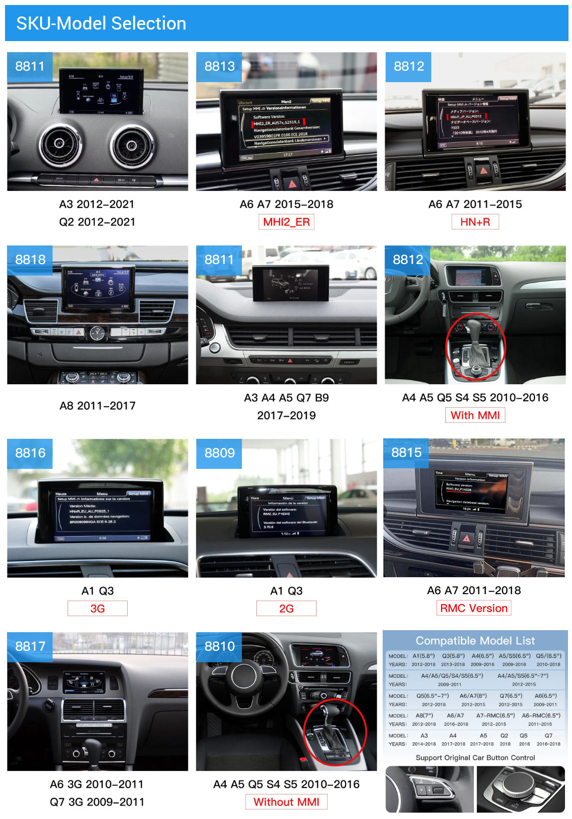 Our product is compatible with a wide range of Audi models and infotainment systems: